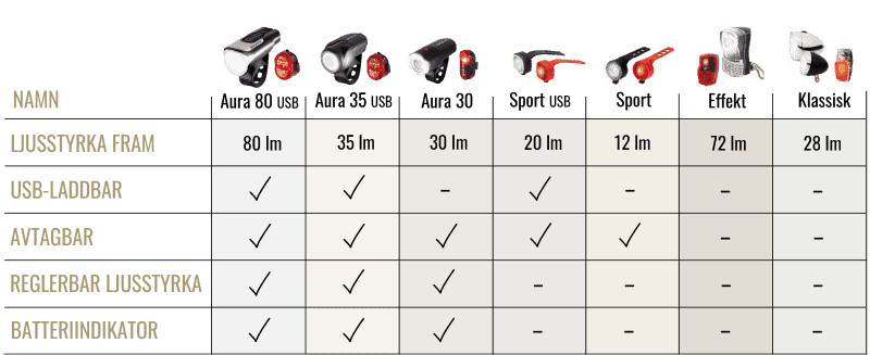 Många lampor har även ställbar ljusstyrka så att du kan ställa ner din lampas styra när du cyklar i mer upplysta områden. Både för att minska risken att blända medtrafikanter men också för att spara på batteriet.