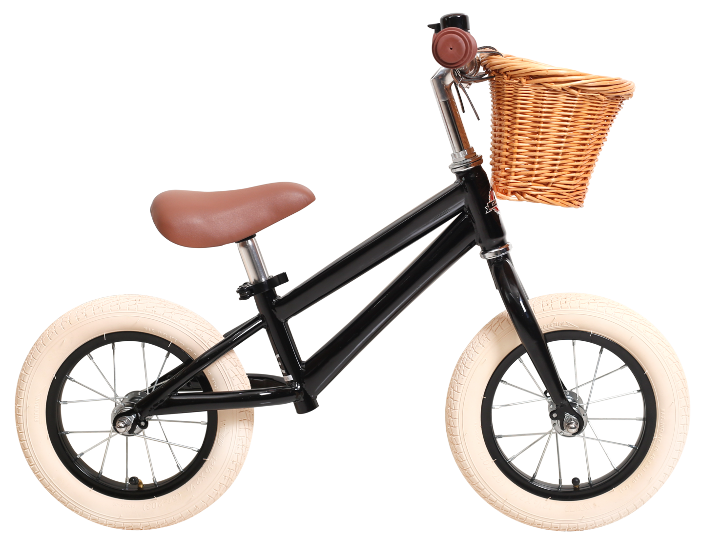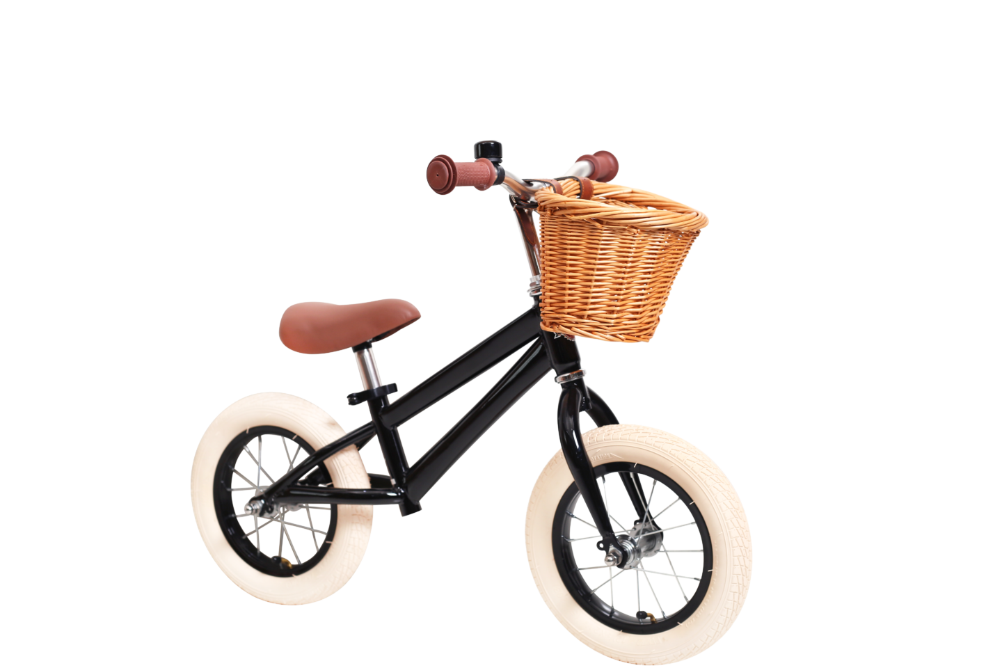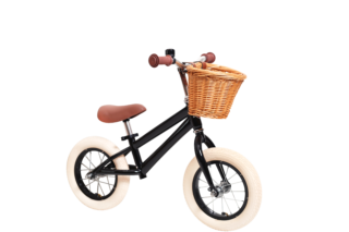 In mini format, this titbit has the same lovely design and quality as our adult bikes. Shiny black frame with matching rims and bell. Brown saddle and beige rubber tires. Tough!This little bike is delivered fully assembled and the bicycle basket is included.