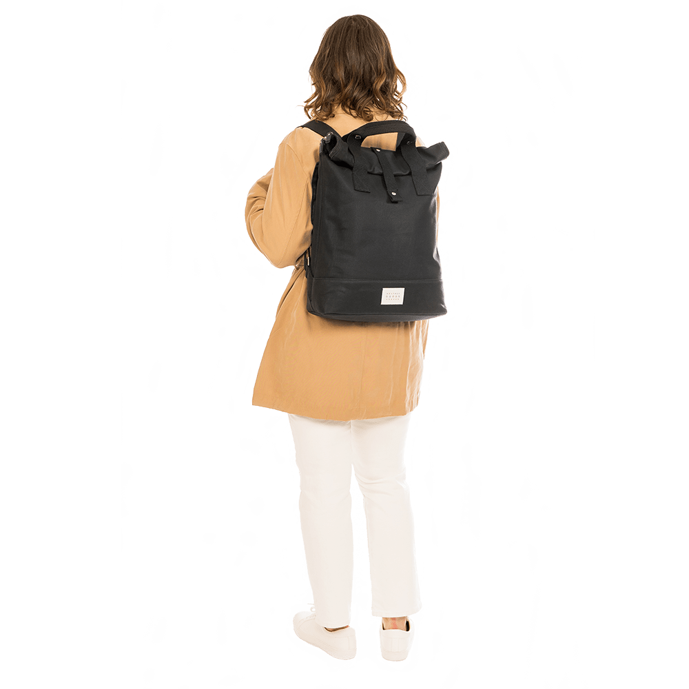 Väskan är fylld med smarta funktioner, som t.ex. att den stängs med en rullfunktion. Det gör att den får en nättare storlek vid normal användning men kan göras större när mer skrymmande saker behöver få plats.