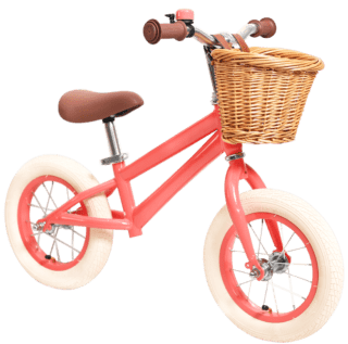 I förminskat format har denna godbit samma härliga design och kvalitet som våra vuxencyklar. Smutsrosa ram med matchande fälgar och ringklocka. Brun sadel och beiga däck. Mums!Cykeln levereras färdigmonterad och cykelkorgen ingår.