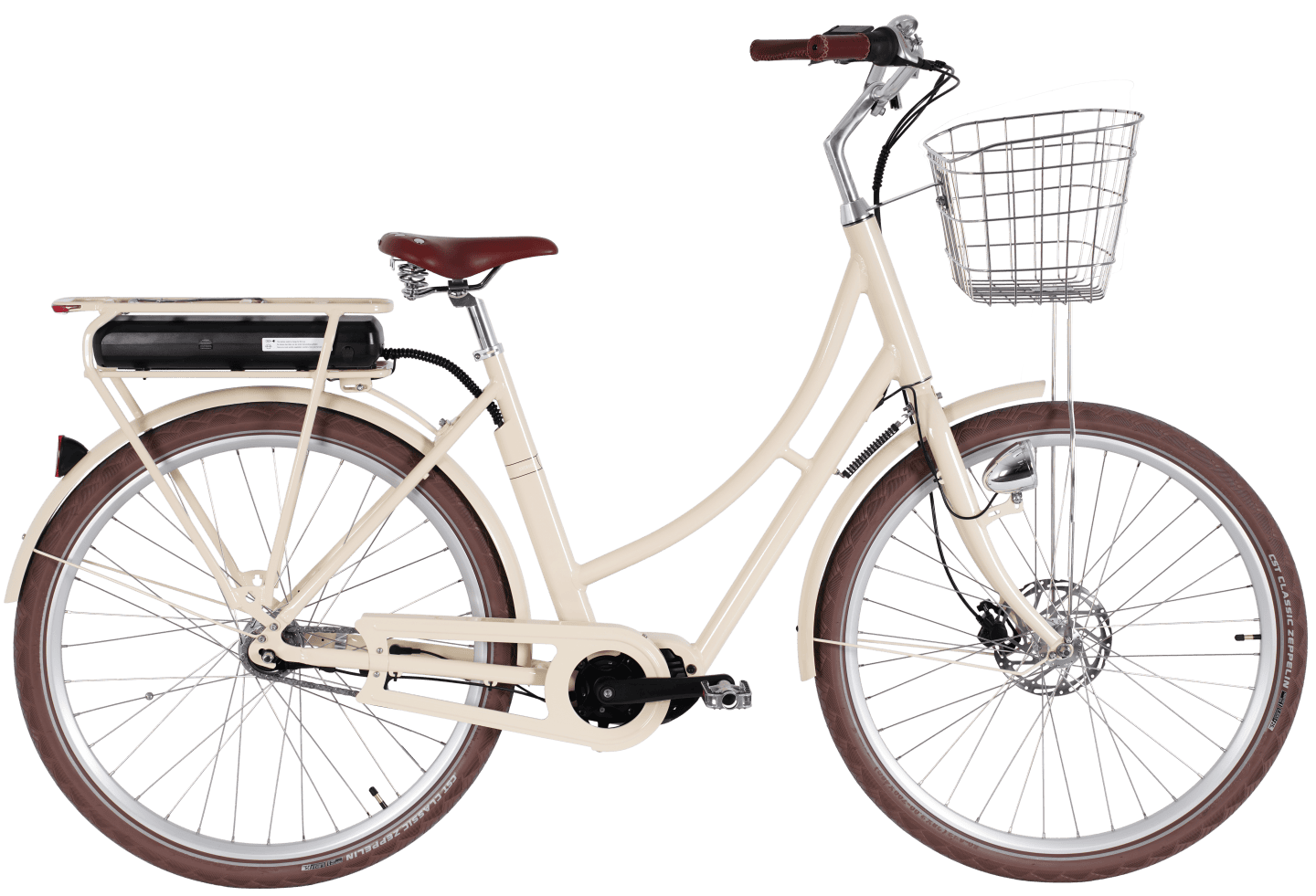 Prima Mitt är också något så ovanligt som en stilig elcykel, om vi tillåts säga det själva. Samma vackra ram som modell Prima, men anpassad för att klara av elektrifieringens krav. Batteriet är självklart löstagbart, du behöver inte oroa dig för att behöva kånka hela cykeln till närmaste eluttag när den ska laddas.