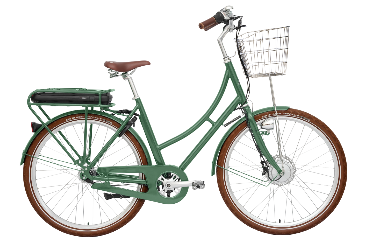 The Prima e-bike is also something as unusual as a stylish e-bike, if we may say so ourselves. The same beautiful frame as the Prima model, but adapted to meet the demands of electrification. And with its battery in a luggage rack, so you don’t have to cycle around with a big lump of plastic in the back. Of course, it’s removable, so you don’t have to worry about having to lug the whole bike to the nearest power outlet when it’s time to charge 😃