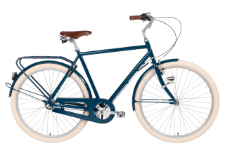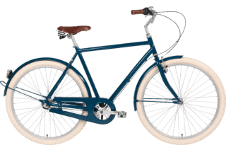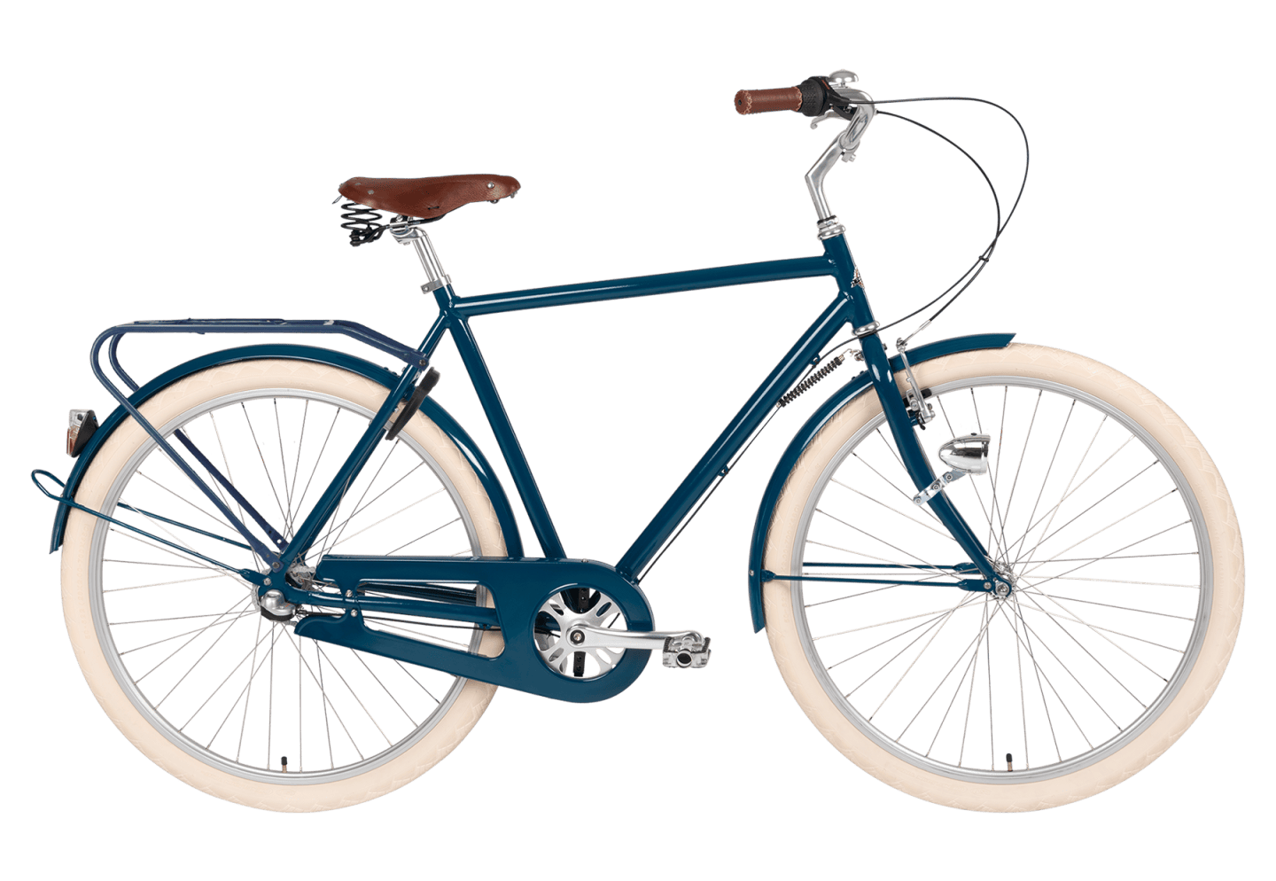 Som en rullande Prippsreklam. Havsblå ram med matchande stänkskärmar som tillsammans med de stilrena ballongdäcken, bekväma handtagen och lädersadeln ger en klassisk cykel.